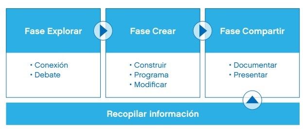 Los pasos de la fase Crear son CONSTRUIR, PROGRAMAR Y MODIFICAR.